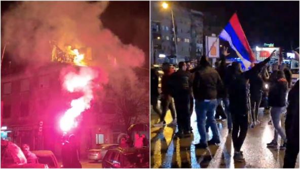 Veliki broj ljudi sa srpskim zastavama, bakljama, uz sirene iz automobila i povike slavi, očekujući pobedu protiv DPS-a Mila Đukanovića.