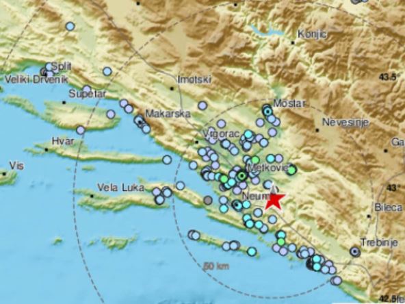 Epicentar je bio 6 kilometra od mesta Ravno. Potres se osetio u hrvatskim mestima koja se nalaze na granici sa BiH.