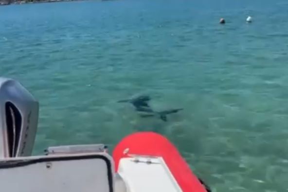 "Ceo dan je tamo. Vrti se u 20 kvadrata i ne izgleda zdrav. Zapravo, izgleda ošamućeno. Ima sigurno metar i po, a pokušali su da mu bace ostatke od ribe iz obližnjeg restorana, ali nije ništa jeo", ispričao je Milan Colić iz ronilačkog centra Tramonto u Tisnom, koji je i napravio snimak.