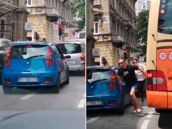 Naime, dok je bilo crveno svetlo na semaforu, muškarac je izašao iz svog vozila i iz nepoznatih razloga odlučio da se verbalno obračuna sa ženom koja se nalazila u kolima ispred njegovih.