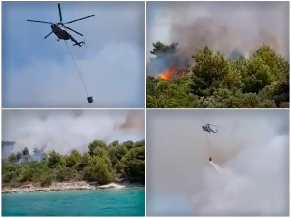 Agencija Hina prenosi da gore maslinjaci, žbunje i borova šuma, ali da kuće za sada nisu ugrožene.