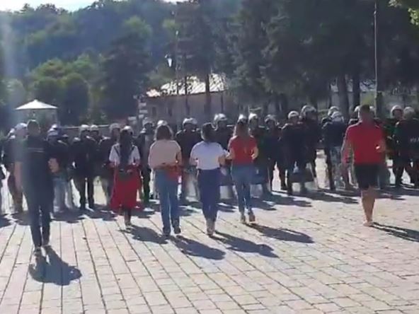 O čemu se radi? Tokom dana, napravljen je snimak na ulicama Cetinja, u kome grupa od oko desetak ljudi prilazi kordonu policije u ponoj opremi za razbijanje demonstracija i razgovara sa njima, a zatim odlaze.
