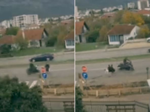 Kako se može videti na snimku, do udesa je došlo kada je motociklista naleteo na ženu koja je pokušala da pretrči ulicu. Kako navode mediji, oboje su transportovani u Opštu bolnicu i navodno su teže povređeni.