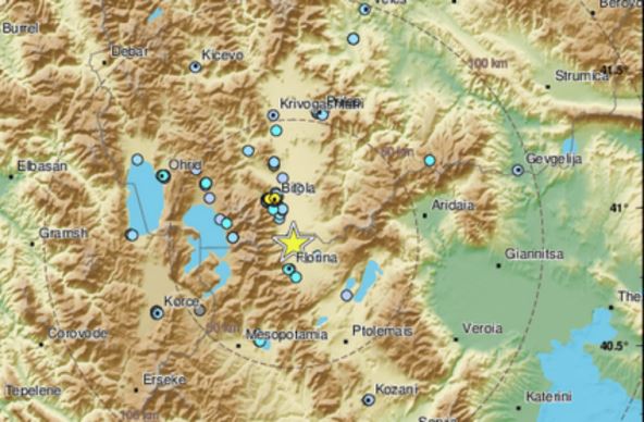 Kako je navodeno na sajtu, u 16.14 sati registrovan je zemljotres 120 kilometara južno od Skoplja, u pograničnom epicentralnom području Bitolj-Lerin.