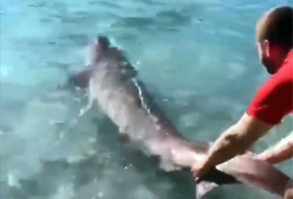 Kako prenosi "Podgorički vremeplov", Danilo Jovanović i Vladan Buzdovan su uspeli da izvuku ajkulu iz mreže u koju se uhvatila i vrate je u more da preživi.