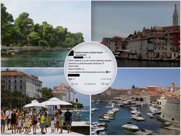 "Tražim radnicu za rad u sezoni (pečenje i prodaja palačinki) na plaži Strozanac-Podstrana. Super uslovi, plata 10.000 kuna", piše u oglasu u kojem je naveden i broj telefona.