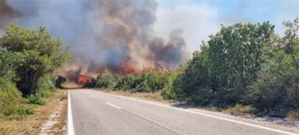 Veliki požar izbio je u sredu između Šibenika i Vodica u Hrvatskoj kod mesta Mrdakovice na Benkovačkom putu, a vatrena stihija preti obližnjim objektima. Front požara proširio se prema Zatonu nedaleko od Šibenika i širi se i dalje, prenosi Index.hr.