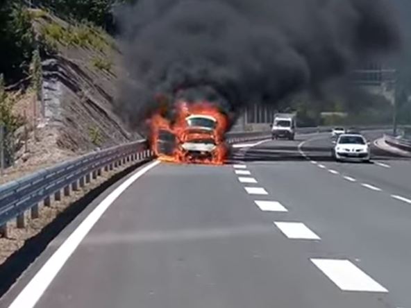 Automobil "pežo" beogradskih tablica zapalio se danas na deonici auto-puta Smokovac-Mateševo. Kako su izjavili saputnici iz vozila, osetili su neprijatan miris u vozilu dok su bili u tunelu Vjeternik. Zaustavili su vozilo na oko 200-300 metara iza tunela, a uspeli su da izvuku stvari iz vozila.
