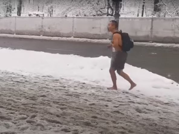 Nepoznati muškarac prošetao je juče centrom Sarajeva po snežnoj mećavi potpuno bos, bez majice i u kratkim pantalonama.