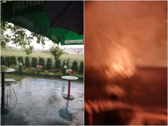 Igrom slučaja zabeležio je udar groma koji je pogodio suncobran u bašti na svega metar i po od mesta na kome se Alijagić nalazio. "Kao da me Tajson udario. Video sam bljesak i osetio jak udar koji me je "oduvao" u unutrašnjost šadrvana. Na trenutak sam pomislio da mi je pogodio telefon i izbacio mi ga iz ruku. Oko minut sam ležao, a onda krenuo prema mobilnom s namerom da ga isključim jer sam očekivao još jedan udar. Šok je prošao za nekoliko minuta pa sam onda snimio i posledice. Straha i nije bilo jer sam bio pripadnik specijalne policije i tri puta sam ranjen, ali ovo je svakako nešto što se ne može zaboraviti", dodaje Alijagić.