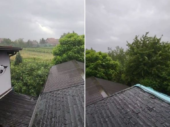 Veliko nevreme stiglo je iz Slovenije na sever Hrvatske, gde pada kiša uz jak vetar. Jak grad je bio i kod Varaždina. U Zagrebu duva jak vetar i pada kiša, palo je nekoliko stabala.