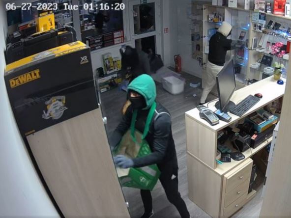 Na snimku se vidi kako njih šestorica dolaze sa dva vozila, nakon čega jedno od njih razbija deo vrata, troje ulaze u prodavnicu i "čiste" police, a zatim odlaze u automobile koji su čekali ispred prodavnice sa upaljenim motori i sva četiri pokazivača pravca.