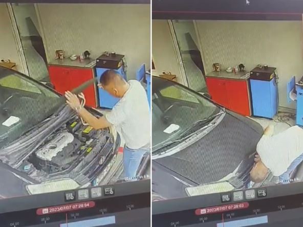 Prestrašeni muškarac se odmah sklonio od vozila. Snimak je objavljen na TikToku, a navodi se da se automobil nalazio na tehničkom pregledu i da je muškarac majstor koji je trebalo da pregleda vozilo. Na početku snimka se vidi kako se majstor saginje kako bi otvorio haubu.