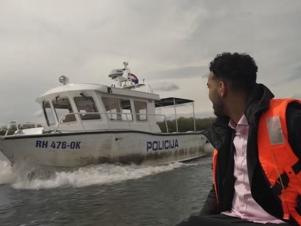 Video prikazuje kako hrvatska policija patrolnim brodom na Dunavu juri mladiće koji skuterima za vodu pokušavaju da se domognu obale malog dunavskog ostrva veličine četiri kvadratna kilometra. Policija ih sustiže na obali, a potom im hrvatski policajac naređuje da sednu na tlo i da spuste kamere.