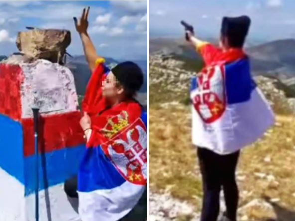 Pravu buru je podigao snimak koji se širi društvenim mrežama a na njemu se vidi devojka koja je ogrnuta srpskom zastavom i rukama simulira pucanje ka gradu Kninu, piše "24.hr". Snimak je nastao na vrhu Dinare i vidi se devojka koja pokazuje tri prsta, a na glavi nosi navodno kokardu.