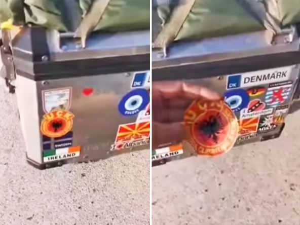 "Putujući kroz Crnu Goru, engleski turista je svratio na jednu tezgu u Zeti, gde je naišao na Milana, autora ovog snimka... Milan je primetio amblem terorističke OVK koji je engleski turista dobio na poklon dok je prolazio kroz Albaniju, pa je turisti objasnio da to nije grb Albanije (kako je ovaj mislio) već terorističke organizacije", piše na "Fejsbuk" stranici Udruženje “Stefan Nemanja” uz objavljeni snimak na kome se vidi kako Milan skida amblem OVK i gužva ga: "Popili su po pivo i Englez je nastavio put bogatiji za novog prijatelja i kratke lekcije iz istorije i geografije. Duboki naklon za Milana!"