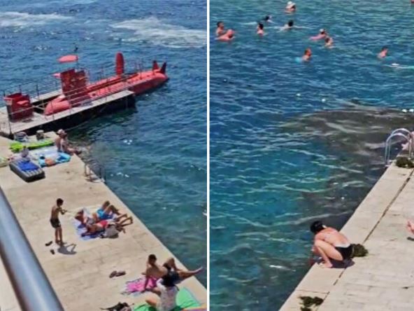 Gomila morske trave, drvenih grana i mulja sjedinila se duž bedema, sa bočne strane plaže, koje je toliko uočljivo da se čak vidi kako turisti pokušavaju da ih izvuku iz mora na površinu. Ono što posebno skreće pažmnju je činjenica da se prljavština nije koncentrisala samo na jednom mestu već je raspoređena duž celog bedema.