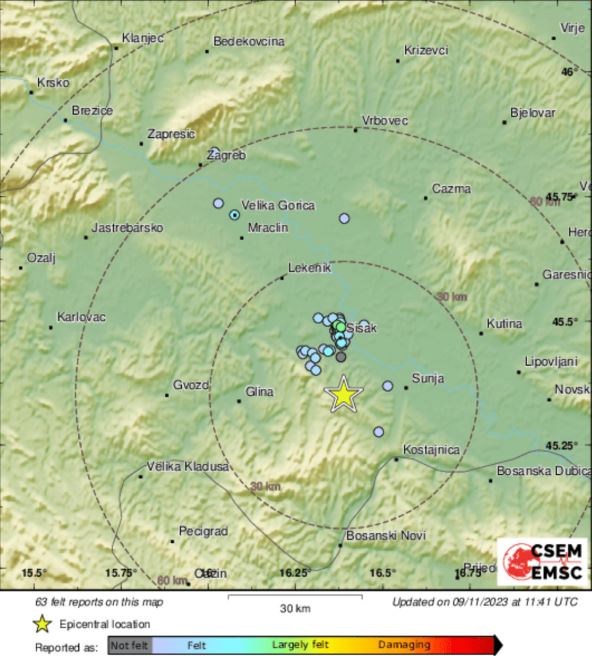 Zemljotres jačine 2,6 stepeni po Rihterovoj skali pogodio je danas Hrvatsku, javlja "EMSC", portal koji beleži svaki potres na svetu. Potres se dogodio na oko 20 kilometara zapadno od mesta Sisko. Trenutno nema informacija o pričinjenoj materijalnoj šteti kao i da li ima povređenih.