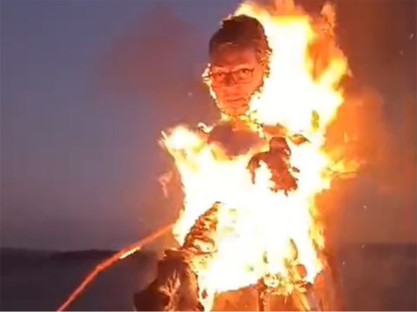 "Indeks" navodi da oba predsednika sede na magarcima, a da onda likuju dok "nestaju u plamenu". Pogledajte snimak.
