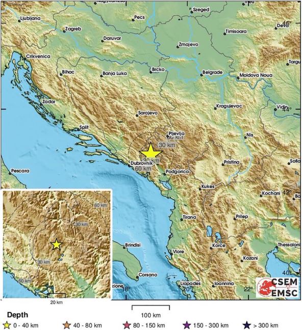 Evropski seizmološki centar (EMSC) javlja da je Crnu Goru protresao zemljotres magnitude 2.8 stepen Rihterove skale.