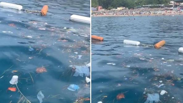 Ove sezone turisti koji su boravili u Crnoj Gori masovno se žale na prljavu vodu, lošu uslugu i visoke cene. Lišće, granje, plastične čaše, smeće, iskorišćene medicinske rukavice... Sve ovo usnimljeno je na površini vode iza bova, na plaži u Budvi.