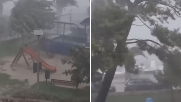 Celi region pogodilo je snažno nevreme, a na hrvatskom ostrvu Korčula snimljen je jeziv video snimak, na kojem se vidi kako je vetar iščupao stablo iz zemlje.