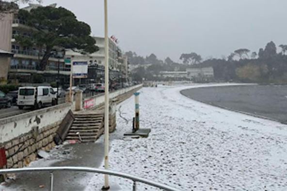 Zamolili su građane za strpljenje. Osim jakog vetra i padavina, plaža u Ulcinju je pokrivena snegom.