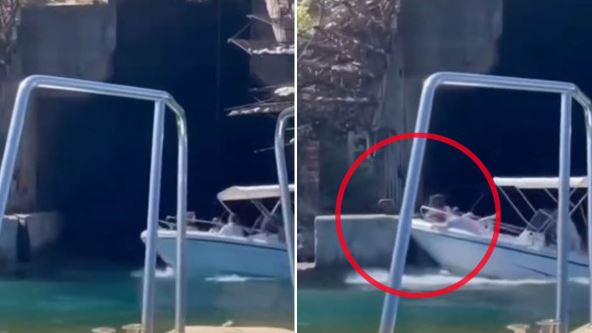 Ovaj snimak navodno je nastao juče na Jadranu, a na njemu se vidi kako čamac sa grupom ljudi "poleće" i udara u zid u ulasku u tunel. Bizaran prizor snimili su putnici drugog čamca, koji su snimali ulazak u sam tunel.