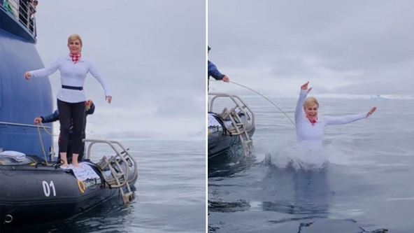 Bivša predsednica Hrvatske i diplomata Kolinda Grabar Kitarović (57) skočila je u ledenu vodu kod Antarktika, a objavila je i snimak trenutka koji će pamtiti zauvek. Ona je sredinom januara ove godine objavila fotografiju na društvenim mrežama iz Južnog Čilea u Južnoj Americi sa poznatim hrvatskim travel-blogerom Kristijanom Iličićem koji je najavio ekspediciju na Antarktik.