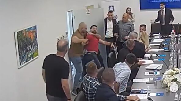 Početak sednice Opštinskog veća u hercogovačkom gradu Grude obeležio je haos i metež, nakon incidenta koji se dogodio neposredno pre početka zasedanja. Kako se može videti na snimku prenosa uživo, odbornike je iznenadila glasna prepirka koja se ubrzo pretvorila u fizičko naguravanje na ulazu u salu.