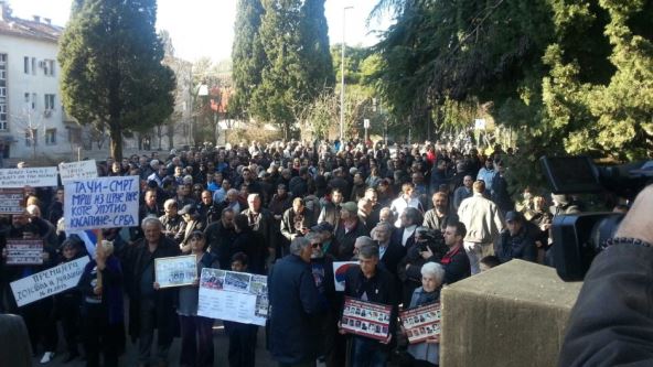 "Ne nasedajte na provokacije. Na protestu su i tri albanske porodice,koje su proterane sa Kosova jer nisu bile lojalne Tačiju koji je prodavao ljudske organe. Nad Crnom Gorom se nadvio crni oblak da crnji ne može biti“, poručio je Jovanović nakon čega više nije bilo skandiranja pomenute parole.