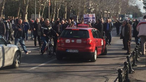 Na nagovor funkcionera Demokratskog fronta Slavena Radunovića i Predraga Bulatovića oni su propustili nekoliko automobila kojima su prethodno blokirali prolaz.