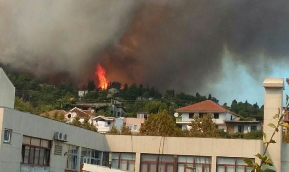 Požar na Bijeloj Gori gase udruženo vatrogasne jedinice iz Ulcinja, Bara, Petrovca i Budve, kao i iz vazduha "dromaderi" i helikopteri, ali još uvek nije pod kontrolom.