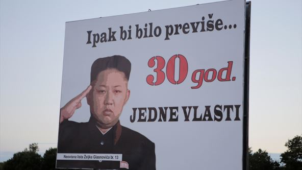 Ranije je primećeno da se na plakatima i bilbordima nalaze likovi predsednika Rusije Vladimira Putina i predsednika Srpske radikalne stranke Vojislava Šešelja, a sada se u zapadnoj Hercegovini, tačnije u Čitluku na bilbordima pojavio i Kim Džong Un, predsednik Severne Koreje.