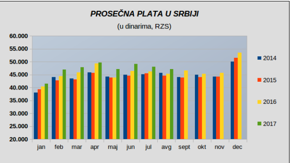 To je nominalni rast plate (i dinarskom iznosu) od 4,3% u odnosu na isti mesec prethodne godine, dok je realni rast (kada se odbije inflacija) nešto manji - 1,8%, saopštio je danas Republički zavod za statistiku.