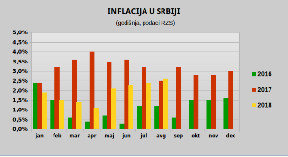 Kako se navodi u saopštenju NBS, posle ovogodišnjeg minimuma u aprilu, inflacija se, očekivano, vratila u granice cilja i u avgustu je iznosila 2,6 odsto, a Izvršni odbor očekuje da će se međugodišnja inflacija i u naredne dve godine kretati u granicama cilja.