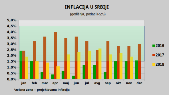 Inflacija se od maja kreće u rasponu od svega pola procentnog poena.
