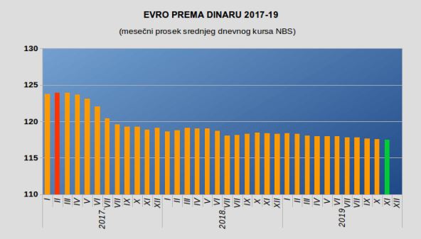 Srpska valuta je najmanju vrednost prema novčanoj jedinici evrozone u ovoj godini imala 29. januara kada je jedan evro koštao 118,4940 dinara.