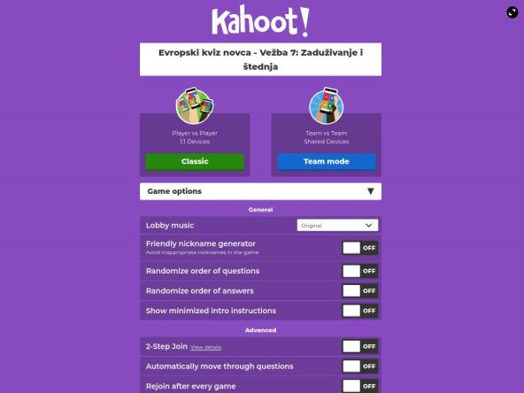 Cilj Evropskog kviza novca, koji se odvija putem digitalne platforme "kahoot!", jeste da se mladi, koji sve ranije postaju korisnici finansijskih usluga, na vreme obuče za odgovorno i samostalno korišćenje raznovrsnih bankarskih i finansijskih instrumenata.