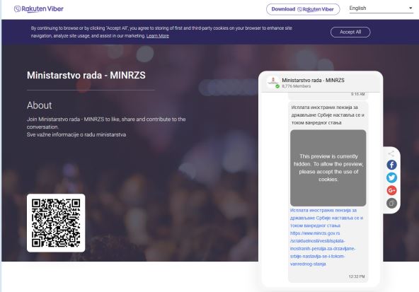 Kanal Ministarstva za rad na Viberu zalaganjem zaposlenih iz Ministarstva i zaposlenih Vibera od danas je dostupan i preko direktnog linka i preko Explore opcije u Viber aplikaciji zajedno sa drugim najposećenijim kanalima Viber aplikacije u Srbiji.