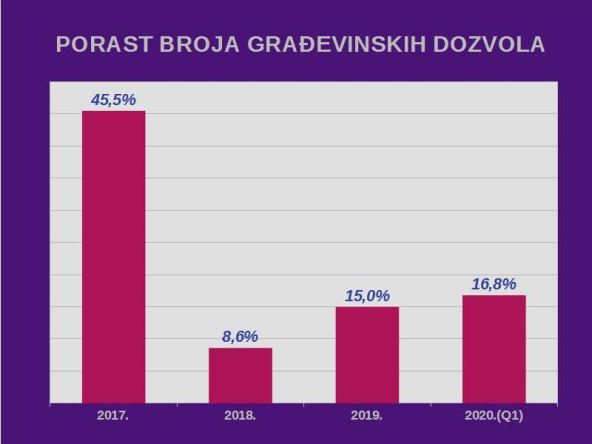 Od ukupnog broja podnetih zahteva za izdavanje lokacijskih uslova, građevinskih i upotrebnih dozvola, kao i drugih vrsta zahteva za izgradnju, 15.033 zahteva je usvojeno, što je za 25,7 odsto više pozitivno rešenih zahteva nego u istom periodu prošle godine, kada je pozitivno rešeno 11.963 zahteva.