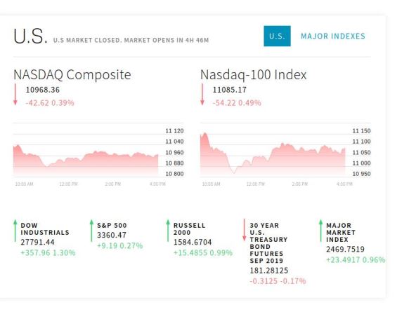Najviše su na dobitku akcije kompanija koje uobičajeno najviše rastu na kada privreda/svet izlasku iz recesije, poput energetskih i industrijskih, dok se Nasdak kreće ispod rekordnih nivoa, povučen padanjem cena tehnoloških divova poput Majkrosofta, Amazona i Facebooka.