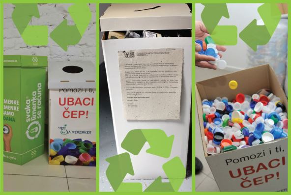 Sortiranje otpada i njegova reciklaža realizuje se u saradnji sa organizacijama i inicijativama "Čep za hendikep", "Naša kuća" i "Svaka limenka se računa".