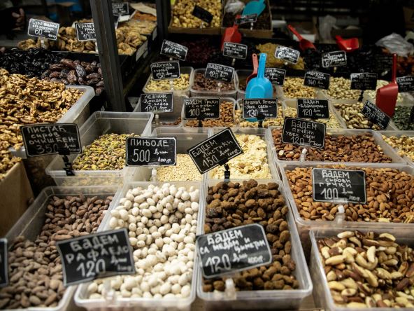 Na ovoj tezgi najskuplji su pistaći, sa svojom cenom od 1.600 dinara po kilogramu, dok očišćene orahe trenutno možemo da nađemo po ceni od 1.200 dinara.
