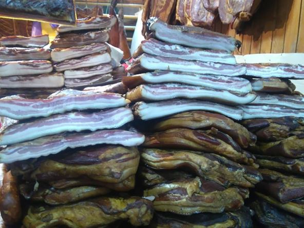 "Za vreme novogodišnjih i božićnih praznika, kao čitav januar prodaja naših suhomesnatih proizvoda je povećana, u ponudi imamo sve, od čvaraka, pršute, slanine. Najviše nam ide bela slanina, koja se sprema na tradicionalan način, kako kažu naši kupci dobro utiče na imuni sistem i dobra je za viruse”, rekla je za RINU Slobodanka Popović koja prodaje suhomesnate proizvode.