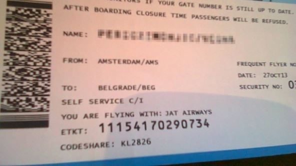Međutim, ono što pada u oči je da na bording karti ne piše da se radi o letu Er Srbije, već o letu Jata.