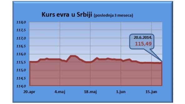 Najniža vrednost kursa dinara prema evru ove godine bila je 28. januara, kada je srednja vrednost iznosila 115,9888 dinara za jedan evro, a najviša 1. januara, 114,6421 dinar za jedan evro.