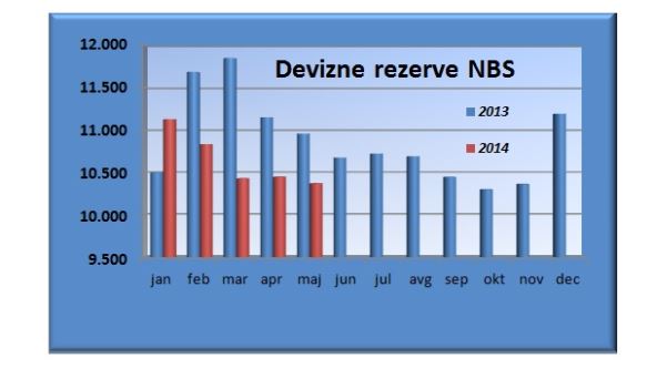 Decembra prošle godine devizne rezerve su iznosile 12,10 milijardi evra, a maja 2013. godine 12,14 milijardi evra.