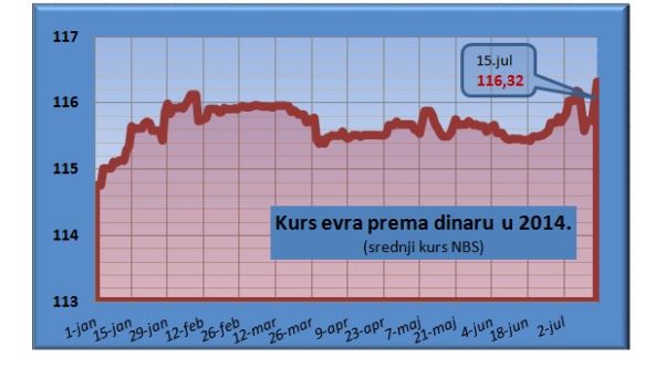 Domaća valuta je ove godine bila najjača 1. januara, kada je jedan evro koštao 114,6421 dinara.