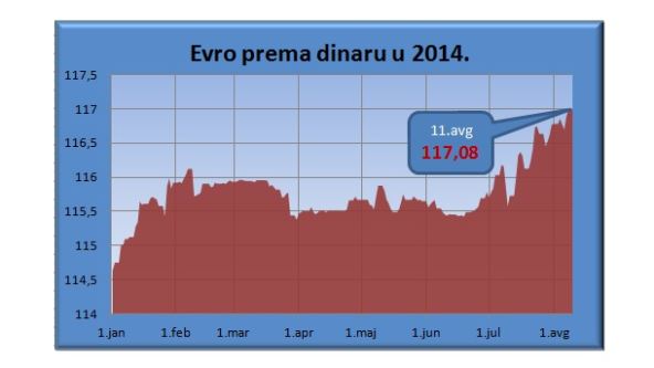 Domaća valuta je ove godine bila najjača 1. januara, kada je jedan evro koštao 114,6421 dinara.